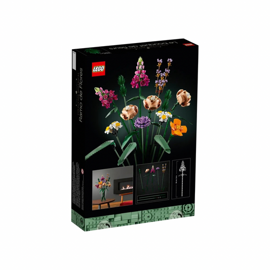 Hobbyist florists can relax and unwind while building the bouquet, featuring 15 LEGO flowers on stems: daisies, cornflowers, eucalyptus, elderflowers, roses, ranunculus, boat orchids, a dahlia water lily, and a bluebell. The stems are adjustable, allowing builders to create a custom bouquet to use as floral decoration at home or in the office. Create larger, more unique arrangements by combining it with other LEGO bouquets, sold separately.