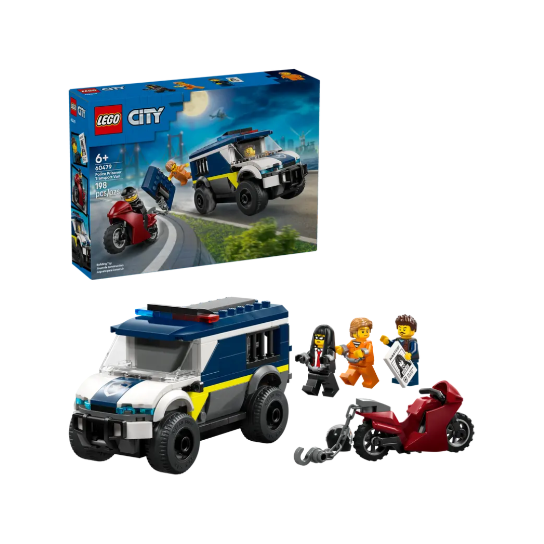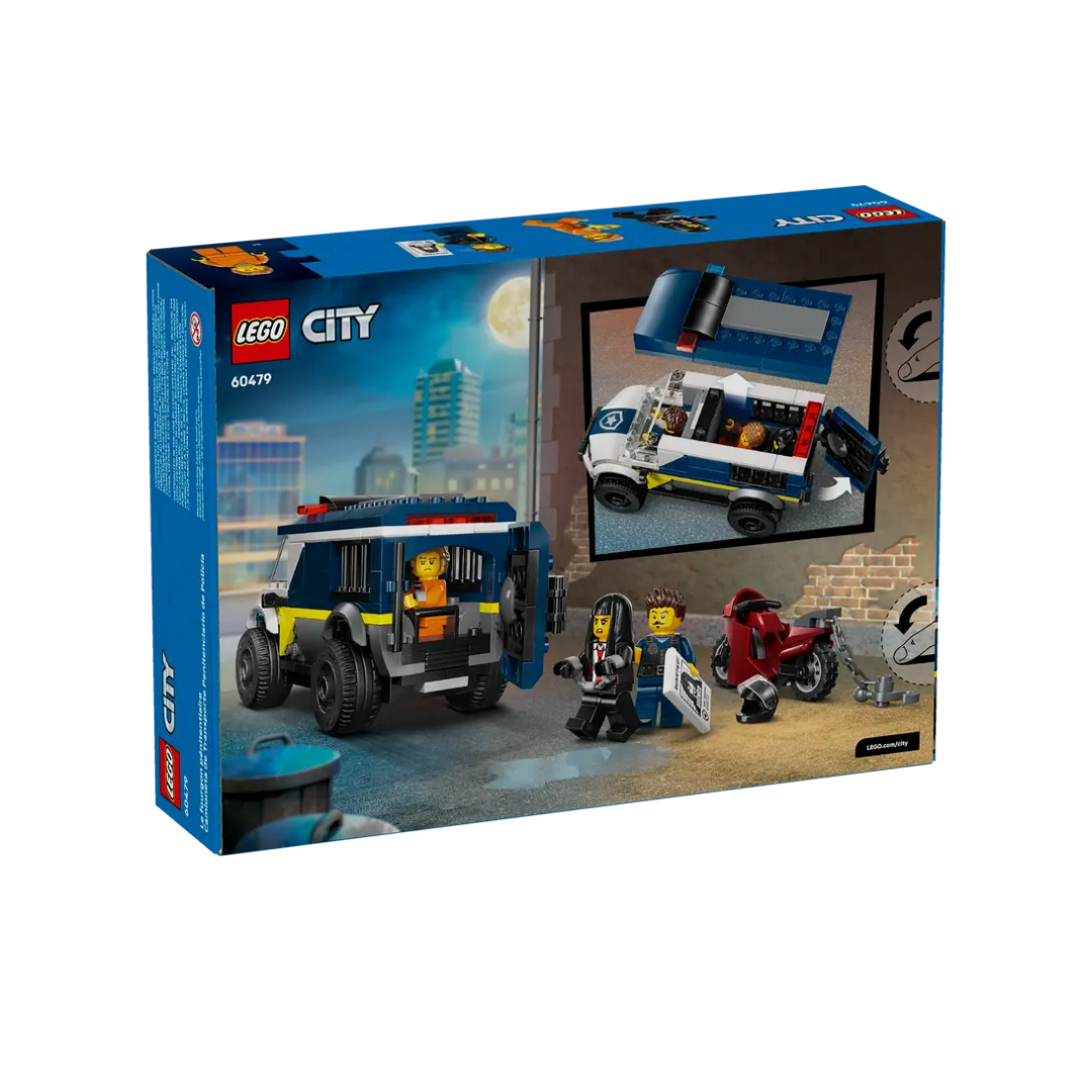 ¡Prepárate para emocionantes aventuras con el set de construcción LEGO® City Furgoneta de Transporte Penitenciario de Policía (60479) para niños y niñas a partir de 6 años! El modelo de vehículo policial cuenta con una detallada cabina y una celdacon espacio para 2 ladrones. Tu peque puede usar la moto de juguete, equipada con cadena y gancho, para arrancar la puerta de la celda. ¡Y bastará con que incorpore al juego las minifiguras del agente de policía y los 2 ladrones para pasarlo genial interpretando épicas fugas! Perfecto para niños creativos y fans de los sets LEGO City Policía, este kit de construcción de un vehículo policial es un estupendo regalo de cumpleaños o simplemente porque sí. Combina este set con otros juguetes LEGO City de vehículos de emergencia (a la venta por separado) para disfrutar de más acción en imaginativas historias. Los peques podrán construir el set con confianza siguiendo las sencillas instrucciones digitales de la app LEGO Builder. Contiene 198 piezas.