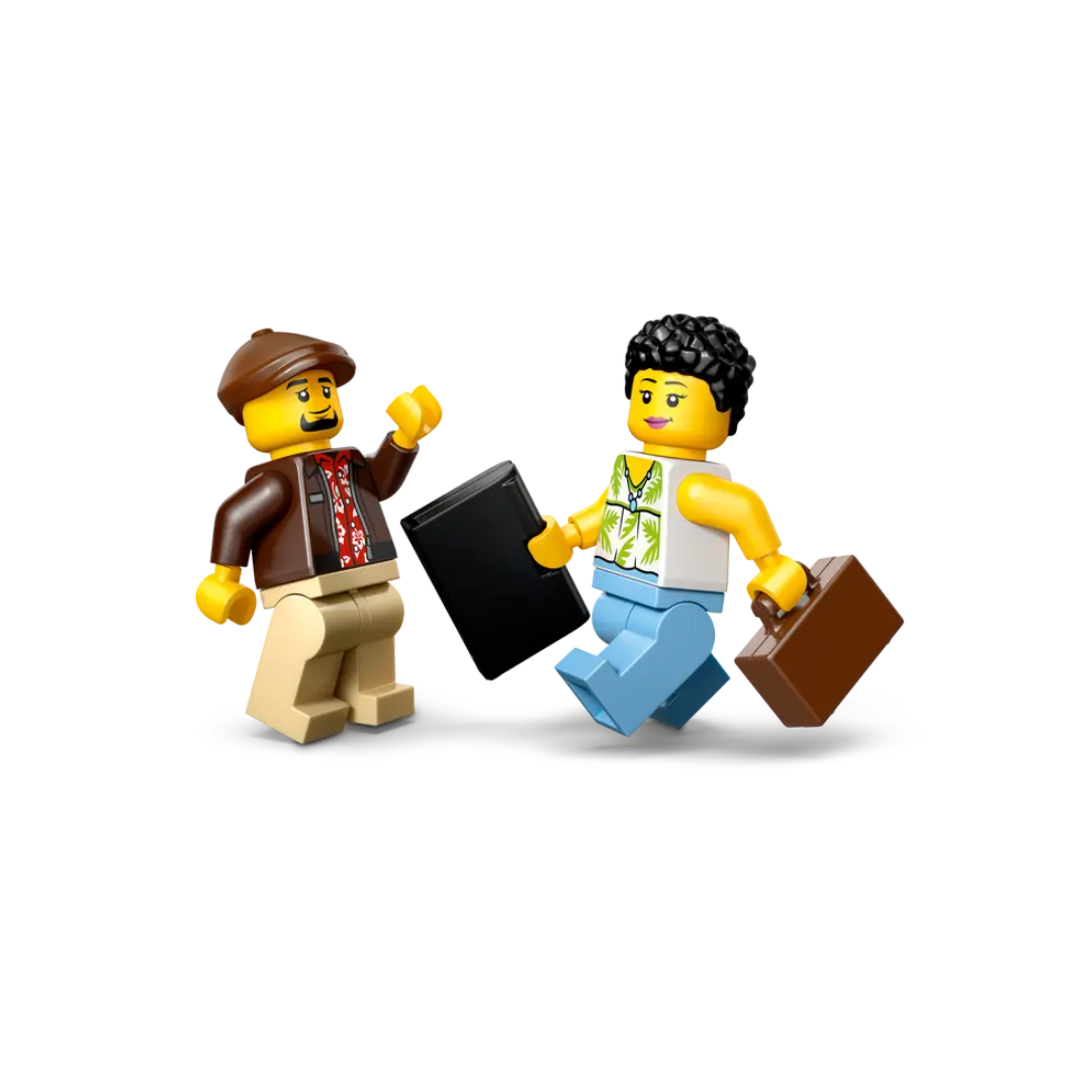 PEGATINAS DIVERTIDAS Y ACCESORIOS PARA MINIFIGURAS: Cuenta con pegatinas de una pantalla GPS, el logotipo del taxi, un anuncio y una batería para el vehículo de juguete, además de elementos que representan el equipaje de la minifigura del turista.