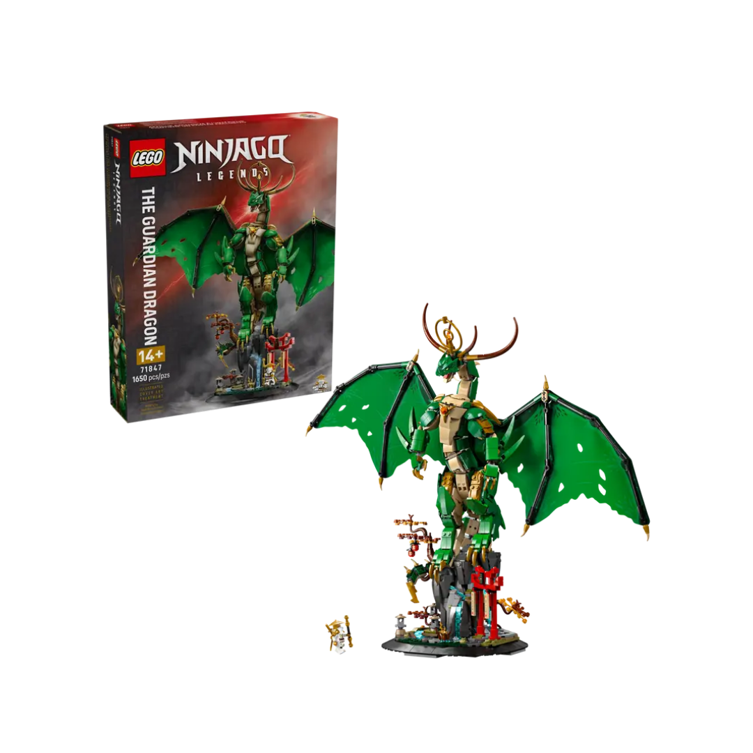 Los fans de NINJAGO® a partir de 14 años podrán ampliar su colección de maquetas LEGO® NINJAGO con el majestuoso kit de construcción Dragón Guardián (71847). Este dragón cuenta con cabeza, brazos y escamas articulados, así como con grandes alas, púas y un halo sobre la cabeza, y es un divertido regalo para fans de la serie NINJAGO: Destino Monstruoso.