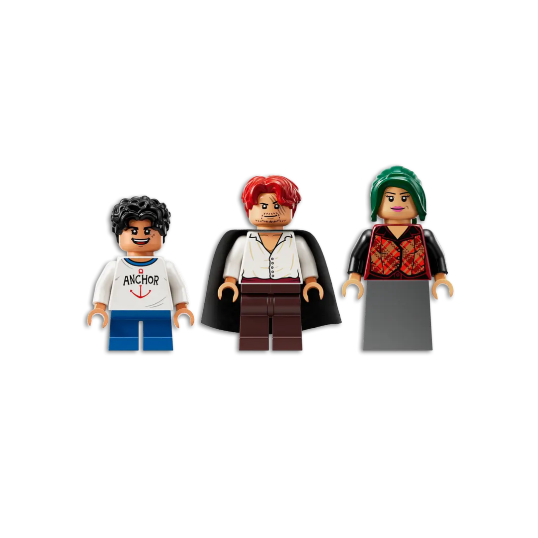 Héroes de acción: El set incluye minifiguras de Luffy, Shanks y Makino, 3 conocidos personajes de la serie de Netflix.