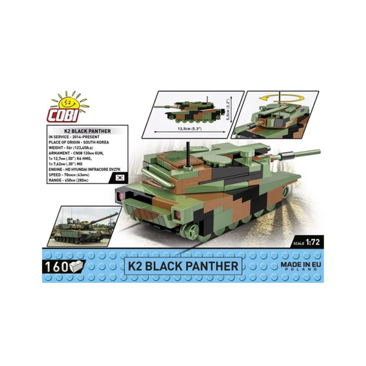 The mini model made of COBI building blocks was designed in a 1:72 scale and consists of 174 high-quality elements. Once built, the tank measures 14 cm long. Despite its compact size, the model retains all the most important features of its historical inspiration. The vehicle has printed markings and details typical of this tank, and the tank turret is movable and rotatable.