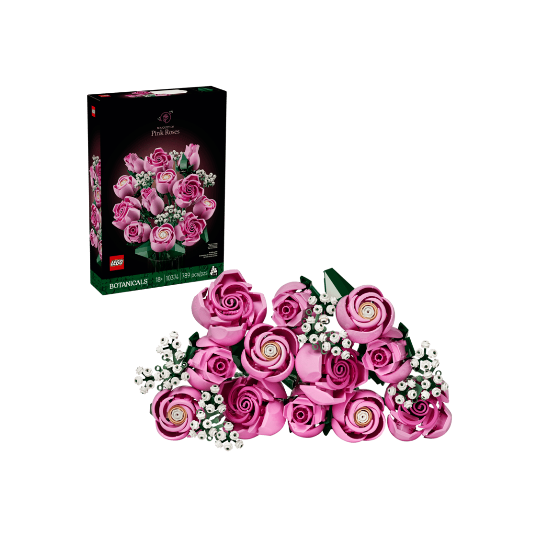 Construye un elegante arreglo floral y maravíllate al contemplar sus sonrosados detalles con el set para adultos LEGO® Botanicals Ramo de Rosas Rosadas (10374).
