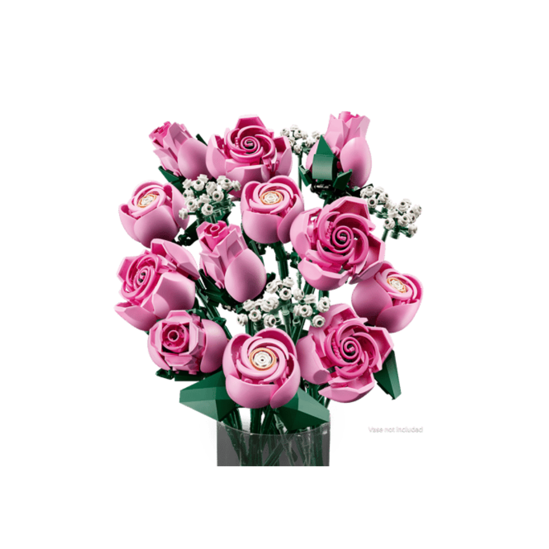 Kit de construcción de un ramo: Cultiva la alegría creativa con el set de construcción para adultos LEGO® Botanicals Ramo de Rosas Rosadas, rebosante de detalles.