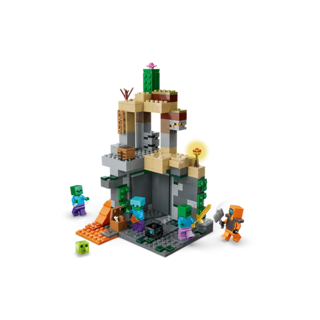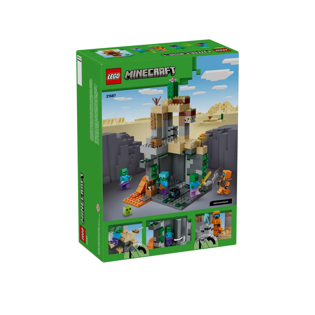 Enfréntate a una horda de zombis Minecraft® con el set de construcción LEGO® Minecraft La Mazmorra de Zombis (21587) para niños y niñas a partir de 8 años. Los peques se aventuran a entrar en una mazmorra repleta de personajes Minecraft, objetos decorativos del videojuego y divertidas características y accesorios. La acción de la mazmorra, situada en el bioma Desierto de Minecraft, está protagonizada por un Errante del Páramo (con maza, pico de diamante y armadura de Netherita), un Limo y 3 zombis (uno con grebas encantadas y espada dorada, y otro con casco de diamante). Incluye una cámara giratoria generadora de zombis y una pieza deslizante que desencadena un desprendimiento de rocas. Tiene también mesa de trabajo, antorcha y cofre conpan, hueso y carne podrida. El set es un fabuloso regalo para jugadores de Minecraft y fans de LEGO. Además, con la app LEGO Builder y sus instrucciones digitales fáciles de seguir, los niños podrán construir con confianza. El set contiene 284 piezas.