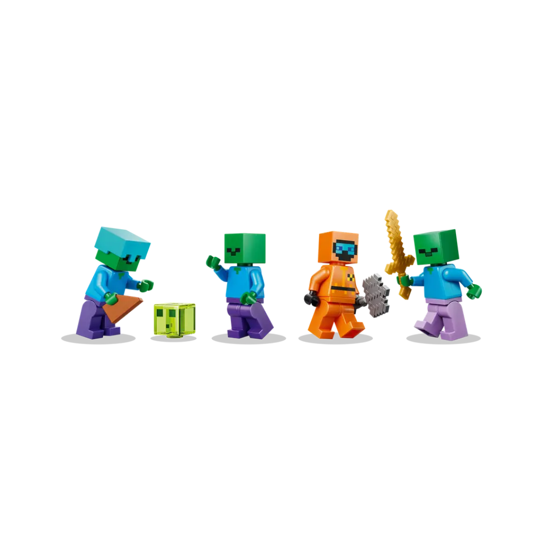 3FIGURAS DE ZOMBIS: Incluye una minifigura del Errante del Páramo, un Limo y 3 zombis (uno con grebas encantadas y espada dorada, y otro con casco de diamante).