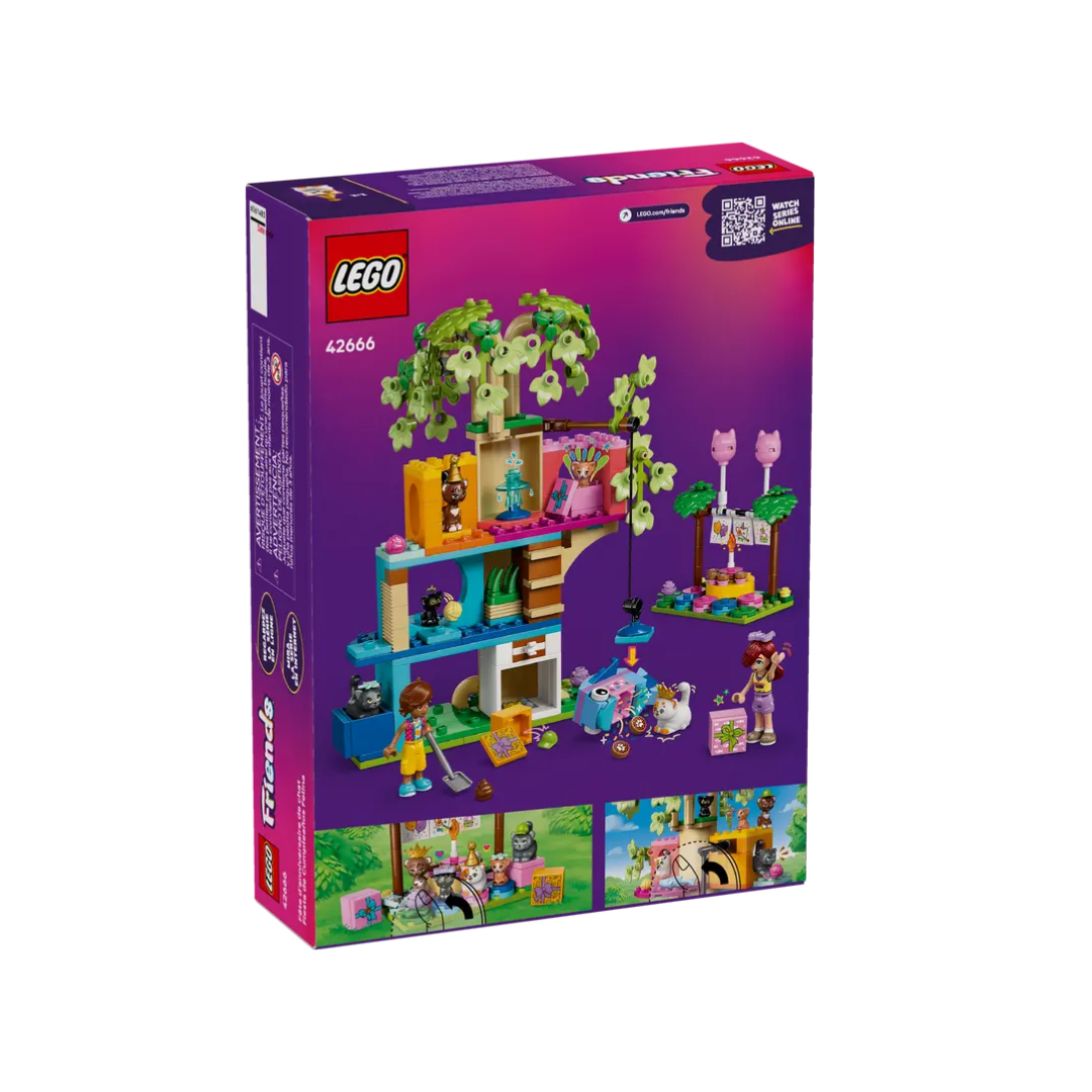 Un kit de construcción para pequeños amantes de los gatos: El juguete LEGO® Friends Fiesta de Cumpleaños y Casa del Árbol Felina para niñas y niños a partir de 6 años contiene 2 minipersonajes y 5 figuras de gatos para fomentar el juego imaginativo.