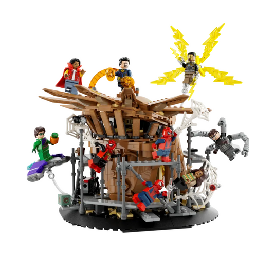 Spider-Man, Spider Fantasma y el Duende Verde Venomizado se enfrentan en sensacionales vehículos con un fabuloso surtido de armas y accesorios. El coche de Spider-Man está equipado con 2 cañones frontales, el deslizador del Duende Verde cuenta con 2 cañones y él lleva bombas-calabaza, y Spider Fantasma, montada en su monopatín, empuña 2 aracnoblásteres. Spider-Man usa una “cuerda” arácnida flexible para balancearse y una gran telaraña para capturar a los villanos. El coche tiene secciones desmontables para acceder al interior, con espacio para 2 minifiguras y el monopatín.