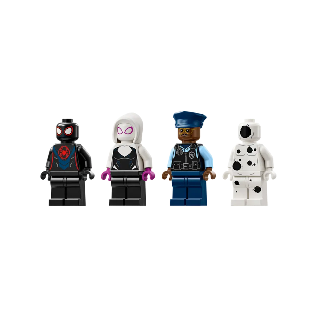Minifiguras LEGO® Spider-Man: Este juego construible de Spider-Man cuenta con las minifiguras de Miles Morales, Mancha, Gwen Stacy y el agente Jefferson, así como accesorios lanza telarañas.